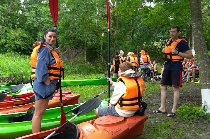 Пройдя необходимый инструктаж, каждый участник сплава получил снаряжение: удобный жилет, вёсла и герметичный пакет для ценных вещей. После этого они распределились по каякам. Практически все участники сплавлялись впервые.