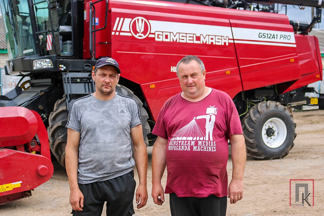 Для Уладзіміра Карыцькі гэта 34-е жніво. Багаты стаж і ў Дзмітрыя Дуброўскага. Ён камбайнёрскую школу праходзіў пры бацьку. Шмат гадоў працаваў самастойна. Пару сезонаў ва ўборцы збожжавых не ўдзельнічаў — яго асноўным клопатам была нарыхтоўка кармоў.