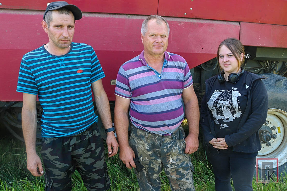 Прыемна было зноў сустрэцца з сямейным экіпажам Галінскіх. Андрэй — вопытны камбайнер. Нягледзячы на розныя складанасці, практычна падчас кожнага жніва намалочвае запаветную для многіх тысячу тон збожжа. Каторы год памочніцай у яго дачка Дар’я. Здаецца, зусім нядаўна фатаграфавала яе, першакурсніцу, разам з бацькам каля камбайна. А сёлета Даша атрымала дыплом аб заканчэнні фінансава-эканамічнага факультэта Полацкага дзяржаўнага ўніверсітэта. За час жыцця ў горадзе не адвыкла ад вясковай працы і зноў ахвотна дапамагае бацьку на жніве.