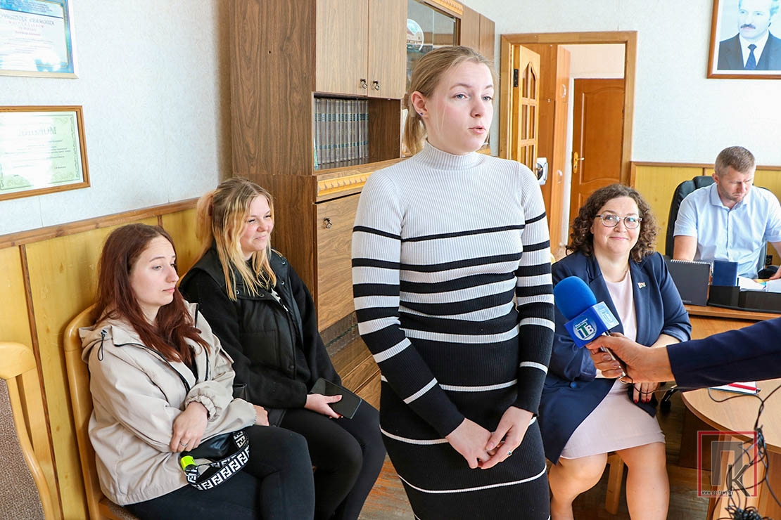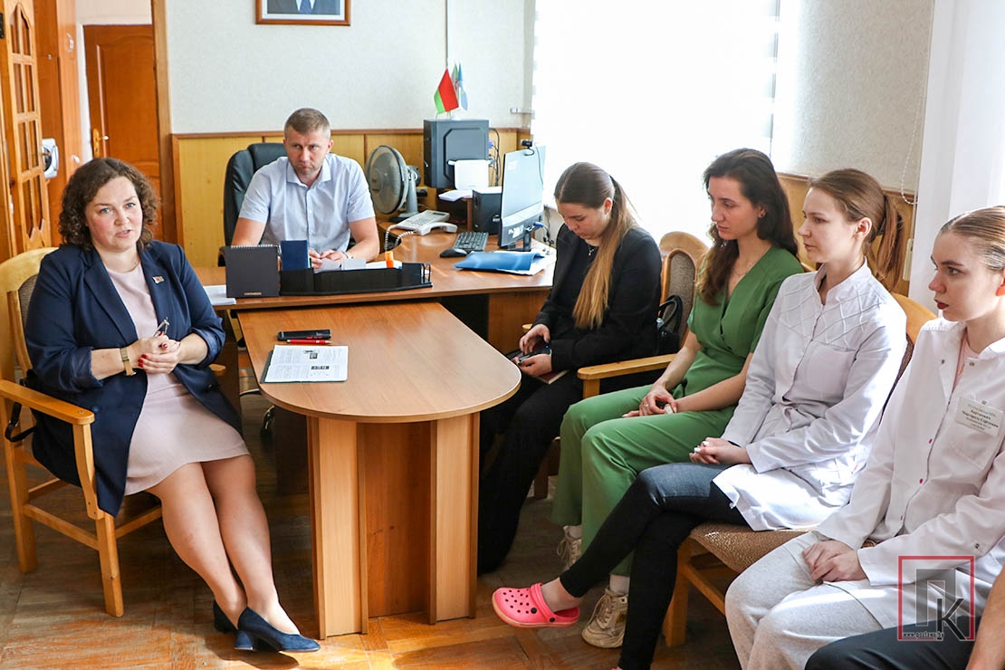 В преддверии Дня молодёжи и студенчества с молодыми специалистами больницы, в том числе недавно прибывшими сюда по распределению, встретились начальник отдела идеологической работы и по делам молодёжи райисполкома Юлия Чагарина и первый секретарь райкома БРСМ Елизавета Загурская.