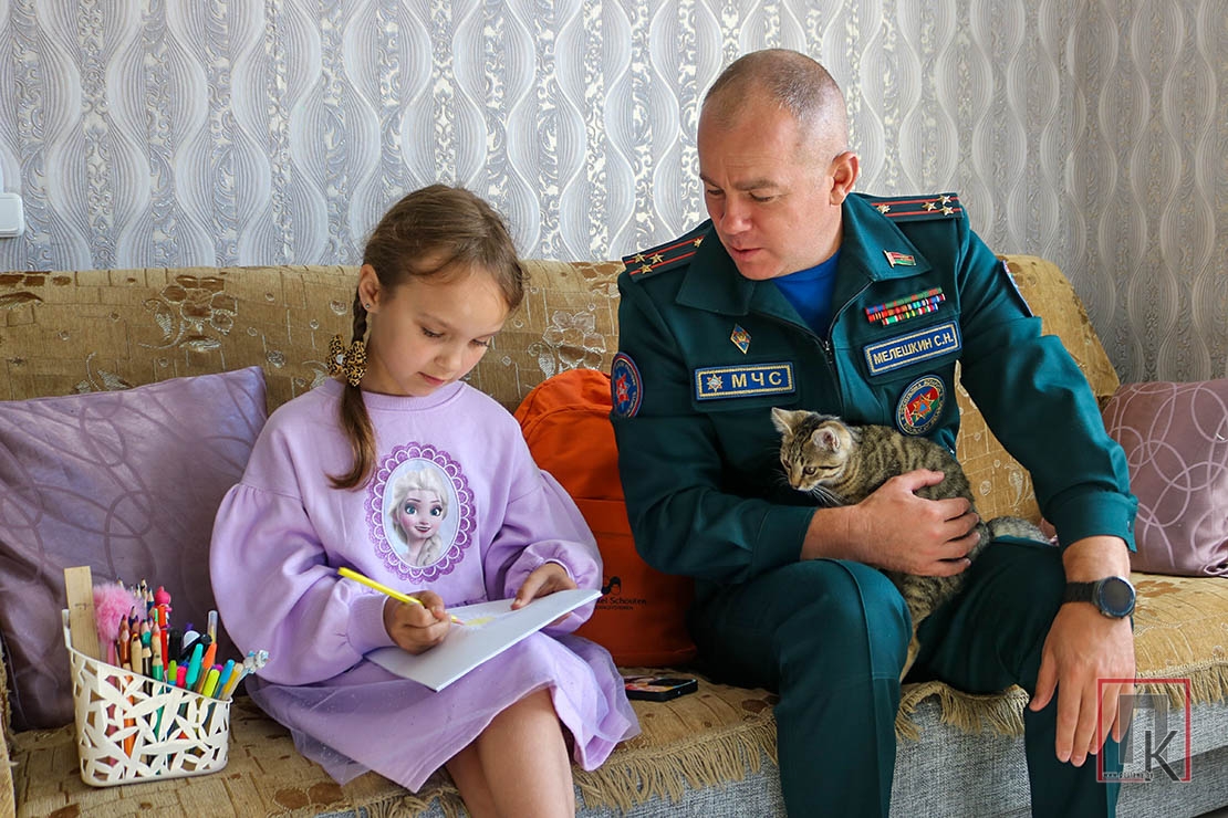 Встреча сенатора с девочкой и мамой прошла в их доме по улице 17 Сентября в тёплой, дружественной обстановке. Сергей Мелешкин расспрашивал Яну, чем она увлекается, какие предметы ей нравятся, где провела каникулы. Девочка рассказала о том, что посещала школьный оздоровительный лагерь, гостила у бабушки, а также поделилась радостью: в этом году она поступила в детскую школу искусств имени Альфреда Ромера. И тогда высокий гость попросил её что-нибудь нарисовать. А потом и сам взял в руки карандаш. В итоге они обменялись рисунками на память. Сергей Николаевич дал девочке примерить свой китель и фуражку.