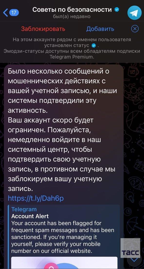 Пользователи Telegram стали получать спам-рассылку якобы от службы поддержки о том, что ими была оформлена заявка на удаление профиля. Для отмены процедуры предлагается перейти по ссылке на фишинговую страницу или интернет-ресурс (полностью идентичные дизайну самого Telegram), где требуется ввести номер телефона и код безопасности. После ввода этих данных аккаунт переходит под контроль мошенников. Следует помнить, что платформа мессенджера не предусматривает удаление аккаунта через службу поддержки. Аккаунт может быть удален только по инициативе его владельца.