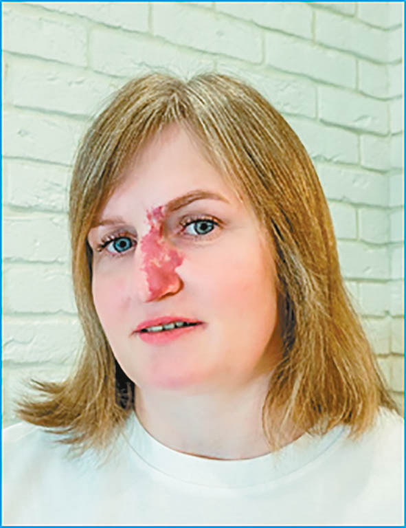 Добрый день. Меня зовут Таня. Мне 40 лет, и у меня родимое пятно на левой стороне носа — гемангиома.