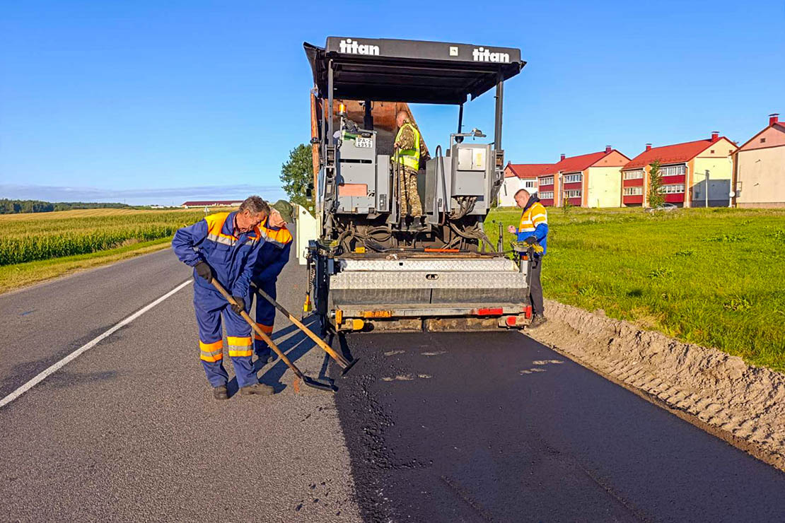 — Предварительно отфрезеровали участок дороги, провели земляные работы, — рассказывал главный инженер ДЭУ-33 Николай Цеханович. — На участке 1 380 метров уложили 450 тонн асфальта. На укладке работали арендованные у ДРСУ-132 асфальтоукладчик и каток. Постарались дорожные рабочие нашего предприятия Александр Якубовский, Валерий Дюшко, Геннадий Рыхлицкий и Никита Свило. Руководил процессом начальник линейной дорожной дистанции №332 Алексей Шоломицкий.