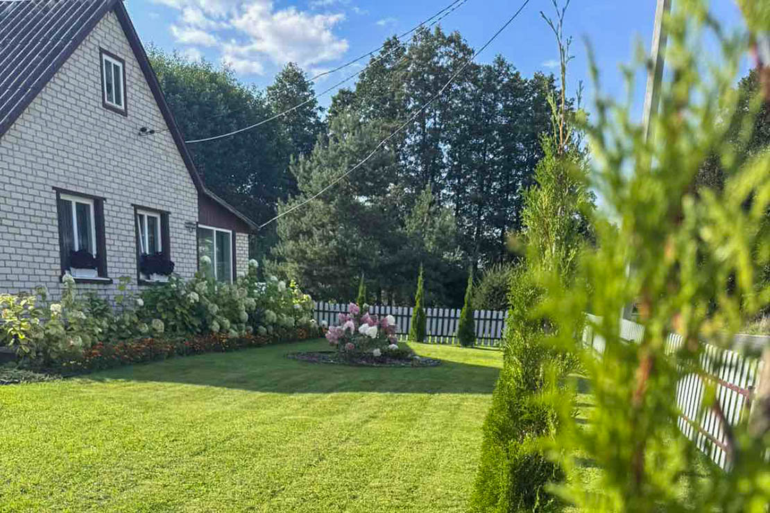А якую кустарнікава-кветкавую прыгажосць стварылі ля дома! Адных туепадобных хвойных раслін тут каля 70, ядлоўцу — каля 20, шмат гатункаў гартэнзіі. Ёсць касачы, півоні, лаванда, іншыя кветкі. Градкі пад агародніну зрабілі насыпныя і кожны год атрымліваюць з іх ураджай.