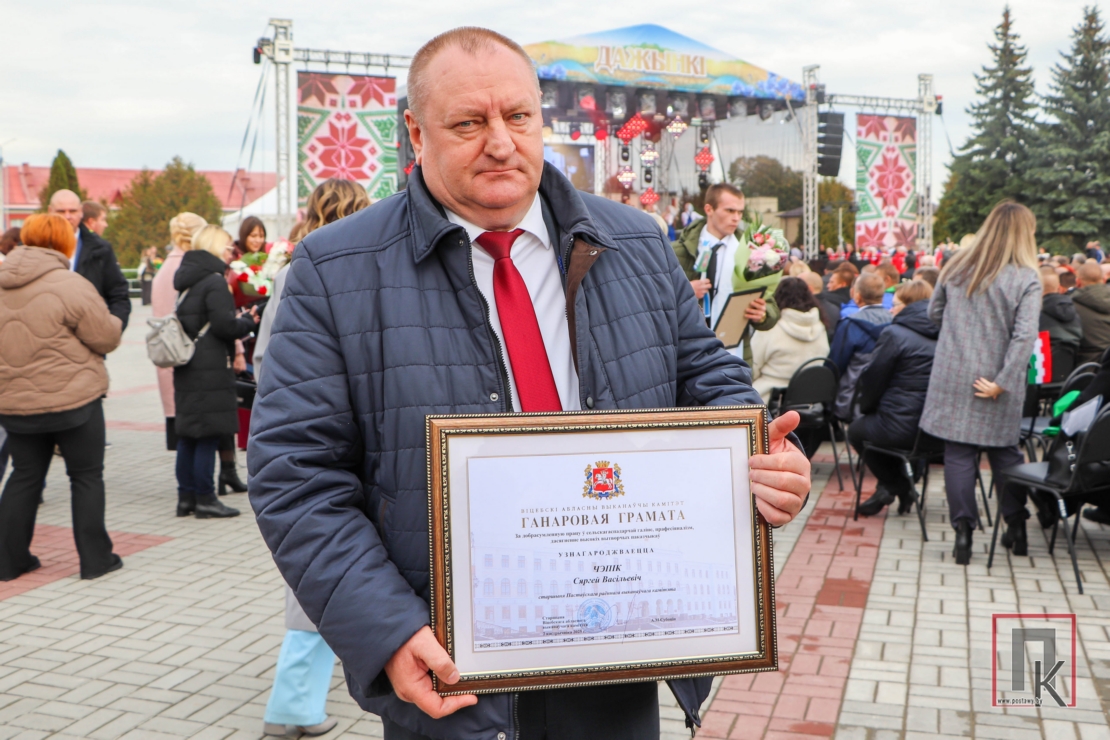 Радуе, што на свяце былі ўшанаваны найлепшыя работнікі не толькі сельгаспрадпрыемстваў, але і малочнага завода, ільнозавода. Падзякі Федэрацыі прафсаюзаў Беларусі ўдастоены дырэктар Пастаўскага малочнага завода Георгій Касцень. Старанне механізатара льнозавода Дзмітрыя Скурацёнка адзначана абласной прафсаюзнай арганізацыяй работнікаў АПК пуцёўкай у санаторый «Лётцы».