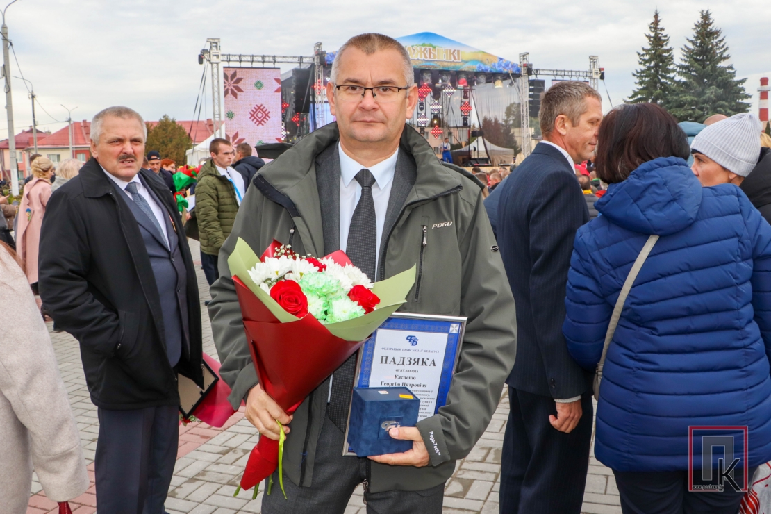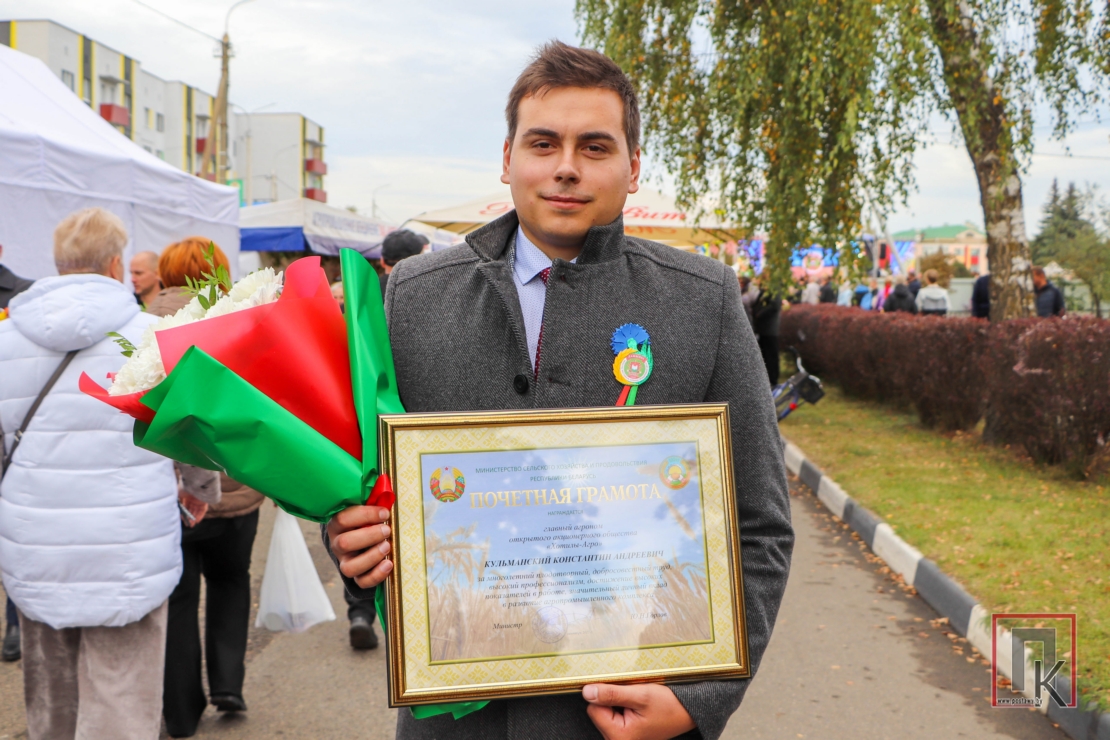 На абласных «Дажынках» галоўны аграном ААТ «Хацілы-агра» Канстанцін Кульманскі ўзнагароджаны Ганаровай граматай Міністэрства сельскай гаспадаркі і харчавання Рэспублікі Беларусь.
