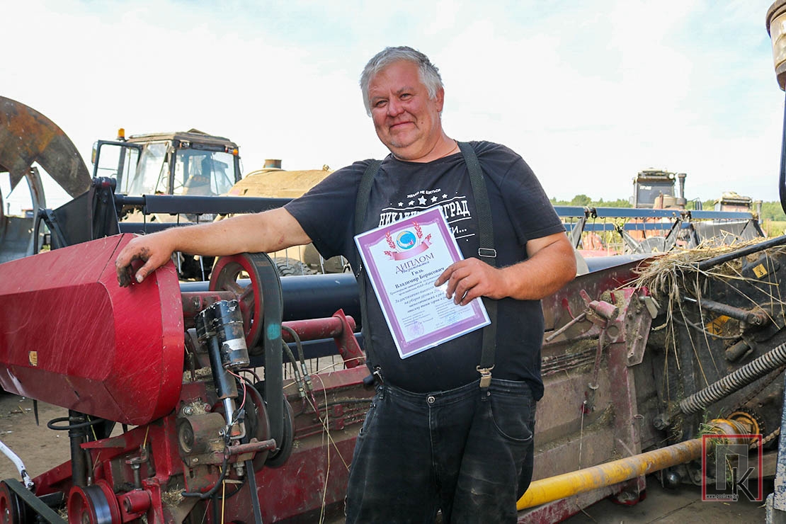 А самому Уладзіміру Барысавічу было не да размоў: стаяла сонечнае надвор’е, і ён даражыў кожнай хвілінай. Затое прыемна было сустрэць яго праз некалькі тыдняў, калі старшыня райкама прафсаюза работнікаў АПК Васілій Катовіч прапанаваў сфатаграфаць момант уручэння прэміі найлепшым камбайнерам. У іх ліку быў і Уладзімір Гіль, які разам с сынам намалаціў больш за 1 000 тон збожжа. У гэтыя дні Уладзімір Барысавіч убірае на камбайне насеннікі канюшыны. Такім чынам паказвае, што ўмее не толькі кіраваць, але і працаваць на тэхніцы ў полі.