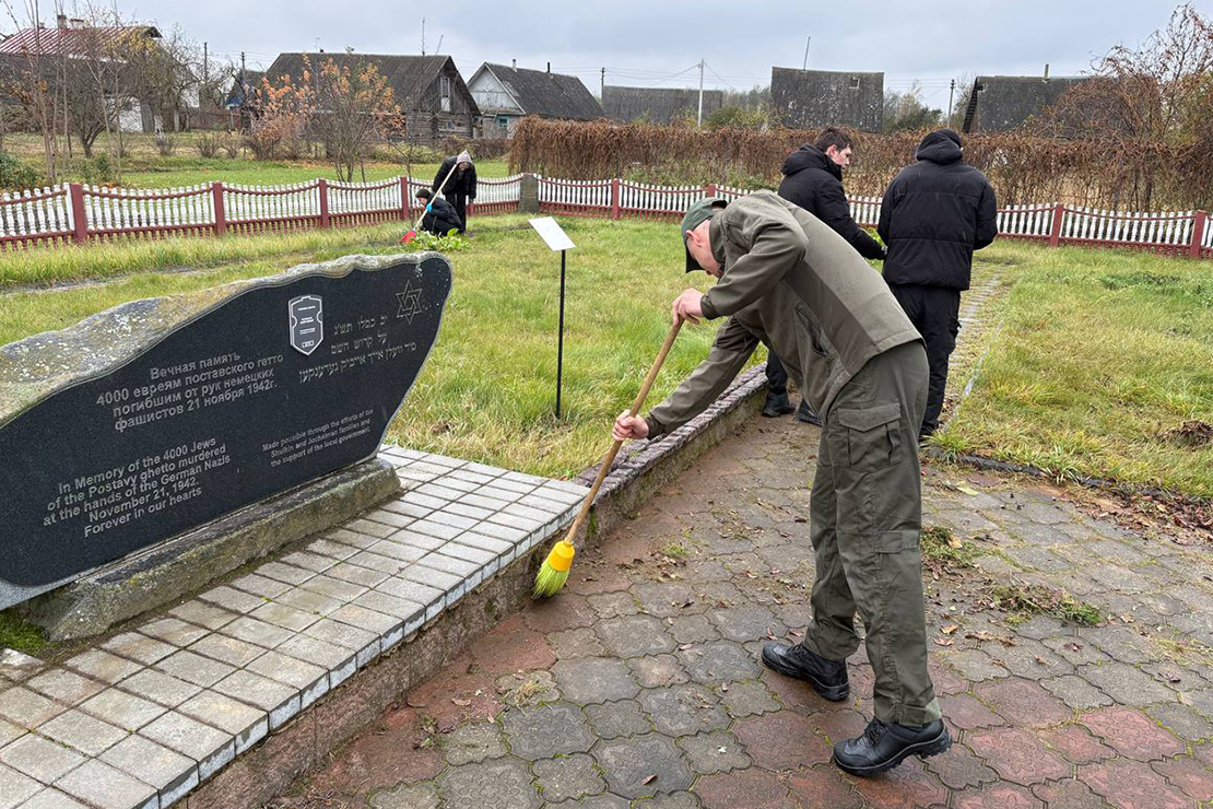 Сегодня ученики 11 класса ГУО «Средняя школа №3 г. Поставы» из ВПК «Щит и Меч» вместе с заместителем начальника РОВД Сениным А. С. и начальником ИДН Юргелевичем Д. А. приняли участие в благоустройстве города. Ребята привели в порядок могилу жертв геноцида евреев на улице Горького. Эта могила закреплена за РОВД.