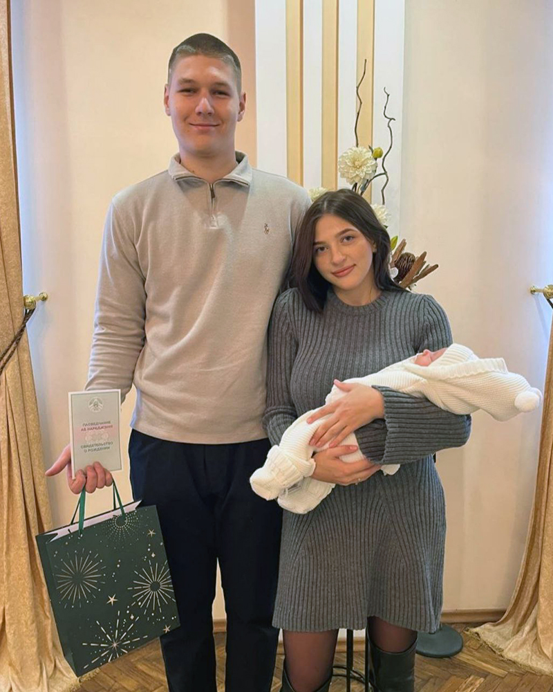 Счастливыми родителями стали Андрей и Мария Юргелявичюс, которые впервые познали радость материнства и отцовства. В торжественной обстановке им был вручен первый в жизни документ их сына — свидетельство о рождении. Малыш Марк, родившийся 2 октября 2025 года, пока не знает, какую важную дату разделил со своей мамой.