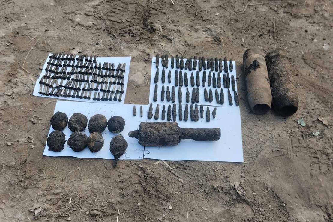 По приезду группы разминирования в/ч 7424 при дополнительном осмотре местности было обнаружено 2 арт. снаряда, 1 австро-венгерская минометная мина, 8 гранат обр.1914, 120 капсуль детонатора обр.1914, 58 запалов гранат обр.1917.