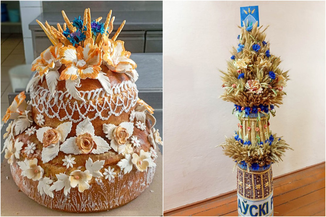 Ну а якія галоўныя сімвалы завяршэння жніва? Вядома ж, каравай і дажыначны сноп. У адным з папярэдніх нумароў «ПК» мы расказвалі пра тое, як натхнёна працуе над вырабам снапа народны майстар Беларусі, дырэктар Дома рамёстваў Таццяна Петух. А сёння паказваем яго ў гатовым выглядзе. Вельмі прыгожы, аздоблены васількамі, ружамі, тканай дарожкай, увянчаны гербам Пастаў. Таксама нагадаем, што кожны год пастаўскі дажыначны сноп афармляецца па-іншаму, але заўсёды абласное журы прысуджае яму прызавое месца.