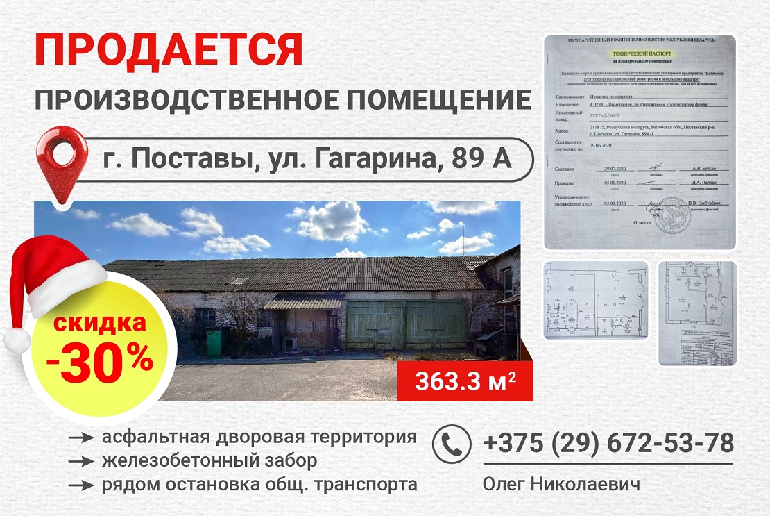 Теперь со скидкой -30%! Продается производственное помещение.