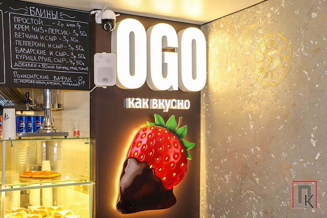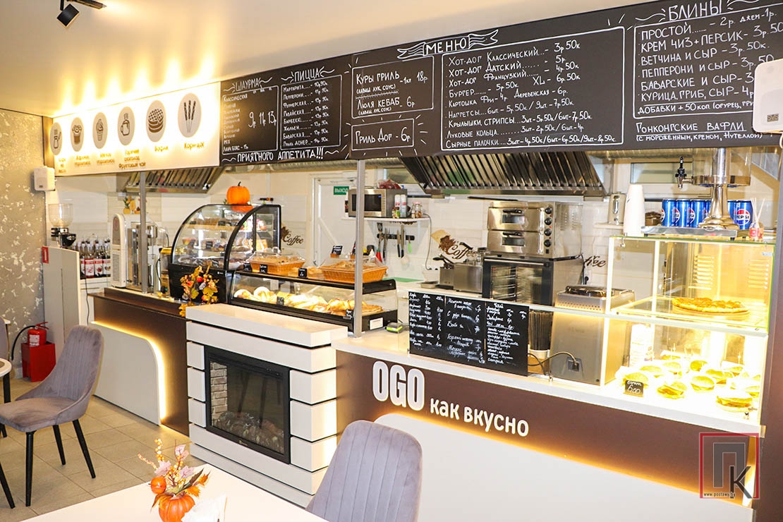 Предварительно договорившись по телефону о встрече, я приехала в кафе «Ogo Как вкусно» в микрорайоне ул. Юбилейной, которое принадлежит героине статьи. В нём я была впервые. Пока ожидала хозяйку, рассмотрела интерьер. Приятные тона, со вкусом продуманная каждая деталь. Отрадно, что здесь могут разместиться сразу 18 посетителей. Кафе оснащено современным оборудованием: от аппарата для мягкого мороженого до современных очистителей воздуха. Тёплую, я бы даже сказала, романтическую атмосферу, создаёт электрокамин, расположенный в центре зала.