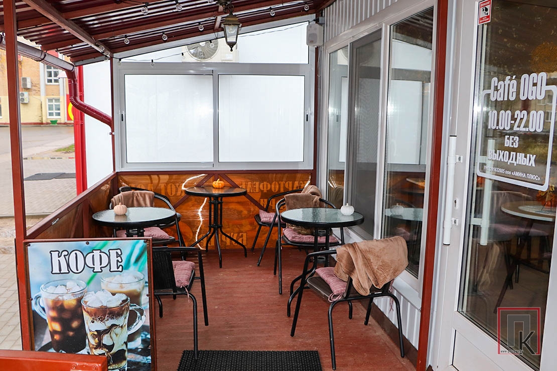 Особое очарование — открытая веранда вместимостью ещё 12 человек. Удобные кресла, мягкие пледы, свежий воздух… Осень здесь особенно прекрасна. Она ярко ощущается за бокалом безалкогольного глинтвейна, приготовленного на каркаде с добавлением апельсина, бадьяна и палочек корицы. Аромат напитка наполняет пространство теплом и приглашает задержаться подольше — укутаться в плед и наслаждаться неспешным разговором.