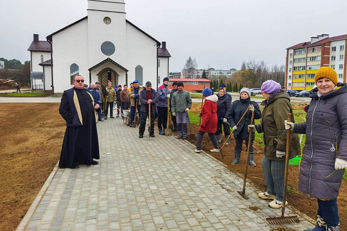 У суботу па просьбе ксяндза- пробашча Паўла Самсонава парафіяне сабраліся на суботнік па навядзенні парадку на прыкасцельнай тэрыторыі. Мужчыны прыйшлі з лапатамі, жанчыны — з граблямі, мётламі.