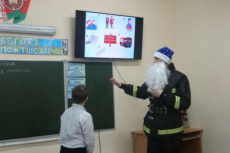 На занятиях команда Мороза-Спасателя разыгрывает сценку с детьми , где герои попадают в опасные ситуации и учатся правильно действовать. Например, как вести себя, если увидел загорание, бедствие на льду и как вызвать помощь. Вместо сухих правил, дети отвечают на вопросы и разгадывают загадки, связанные с безопасностью. И, конечно, за это получают поощрение. А наглядный пример «неправильной» ёлки позволяет детям понять, что пожар может возникнуть даже от главной новогодней красавицы.