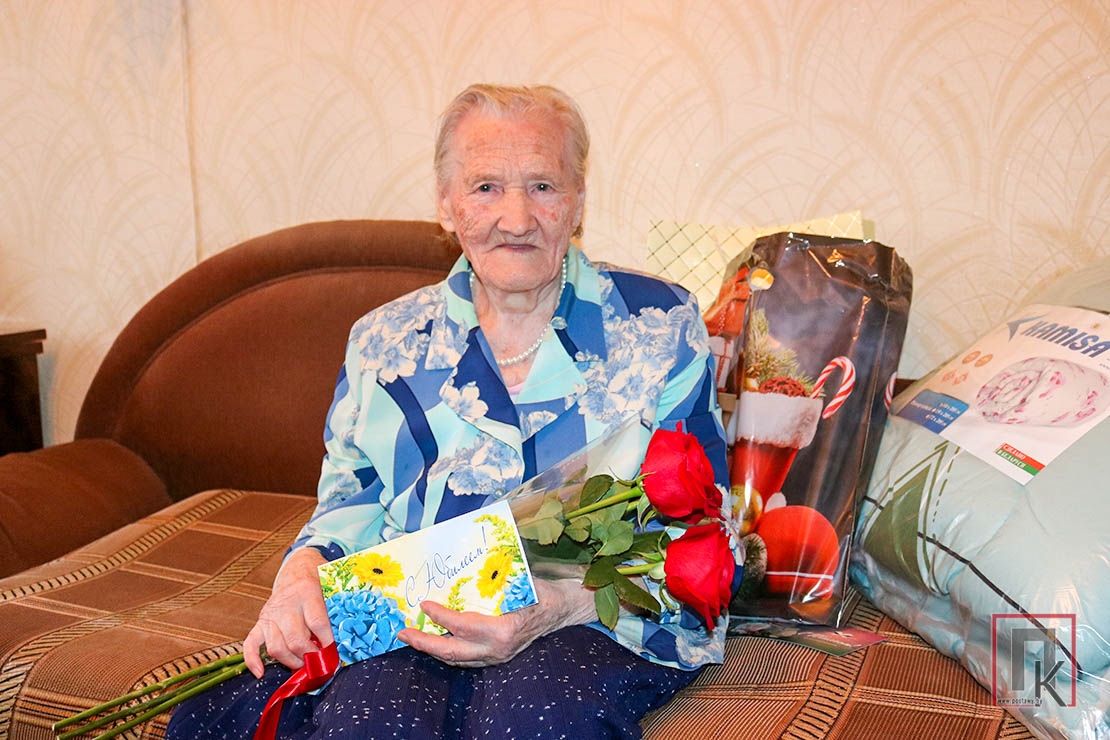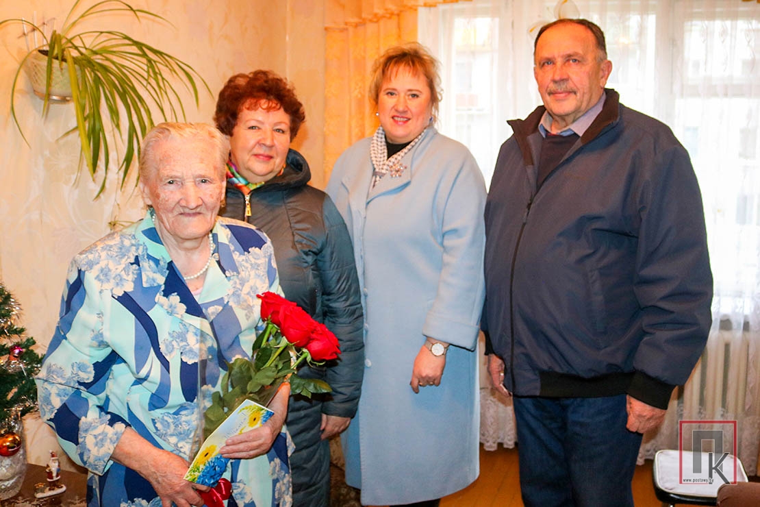Ну хто ёй дасць 100 гадоў?! Добра чуе і бачыць, прыветна ўсміхаецца і запрашае прайсці далей. Не спяшаецца прысесці, стоячы слухае цёплыя словы віншаванняў, прымае падарункі, у тым ліку паштоўку за подпісам старшыні райвыканкама Сяргея Чэпіка. Славамір Шапель перадае пажаданні ад дырэктара сельгаспрадпрыемства Юрыя Шымчыка. Радасцю свецяцца вочы доўгажыхаркі, яна шчыра дзякуе і не можа паверыць, што столькі паважаных людзей да яе завітала.