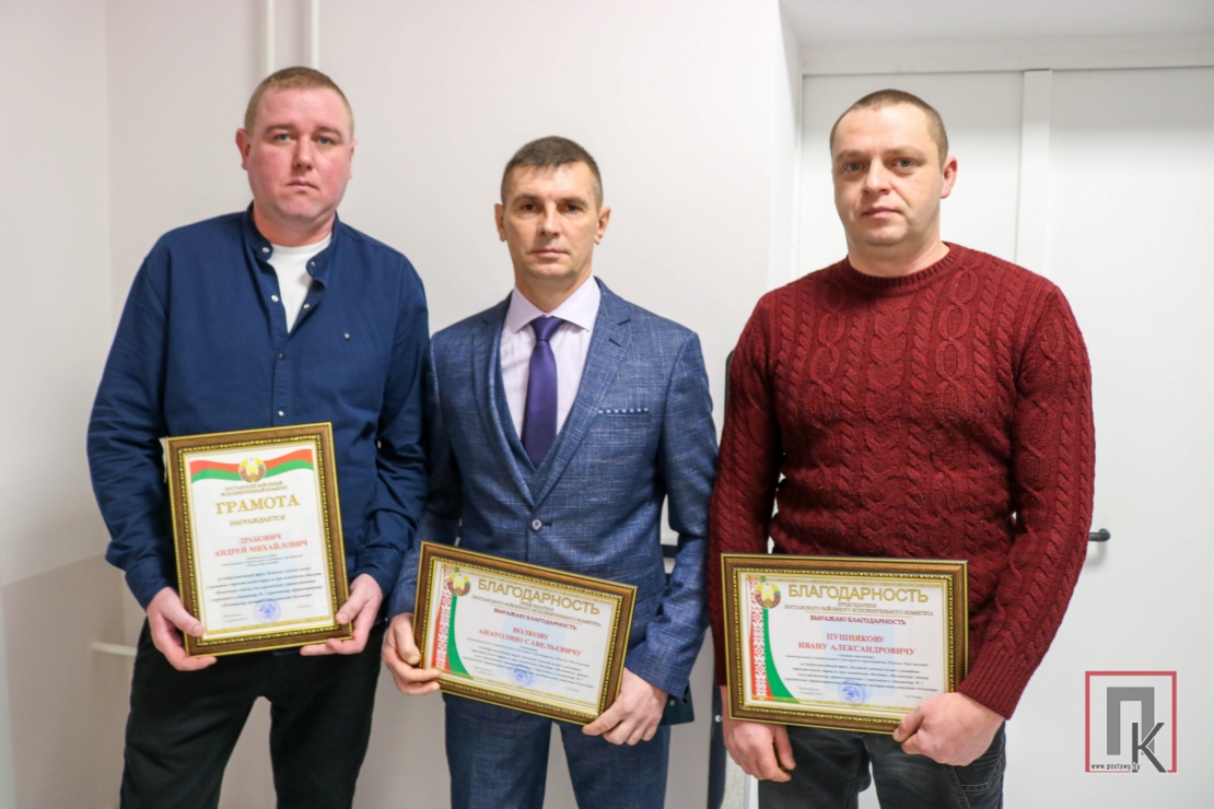 Сергей Чепик поблагодарил высоких гостей за содействие в возведении нового корпуса больницы, а также вручил награды работникам КСУП «Рассвет Поставский». Почётной грамоты районного исполнительного комитета удостоен производитель работ Андрей Драбович, Благодарности председателя райисполкома — каменщик Анатолий Волков и слесарь-сантехник Иван Пушняков.