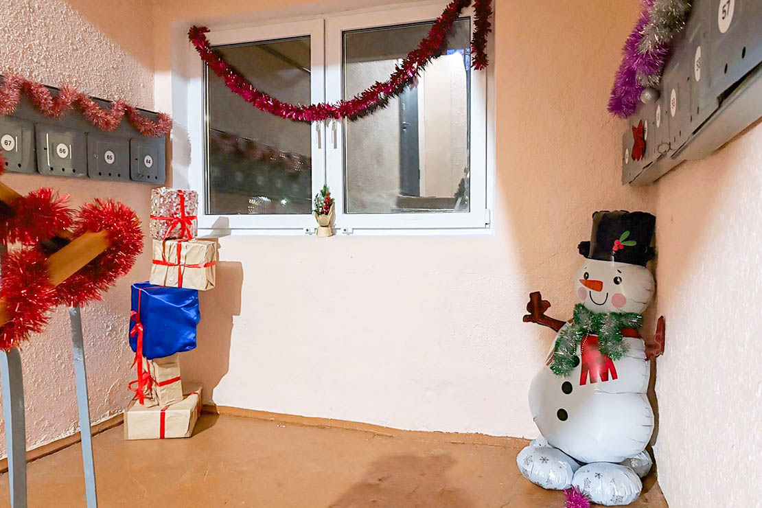 — На одной лестничной площадке с нами живут Дудченко и Каменецкие, — продолжала Виктория. — Наша семья дружит с семьёй Каика с первого этажа. Вот с Натальей и Сергеем в основном и преображали подъезд к рождественским и новогодним праздникам. Мы должны сами создавать для себя эту красоту. Совместная забота о чистоте и порядке не только повышает качество жизни, но и укрепляет добрососедские отношения.