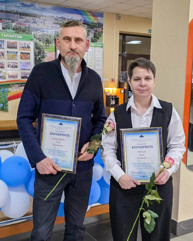 На фото — Олег Дашкевич и Елена Григель из представительства Белгосстраха по Поставскому району. Накануне профессионального праздника их добросовестный труд отмечен Благодарностью филиала Белгосстраха по Витебской области.