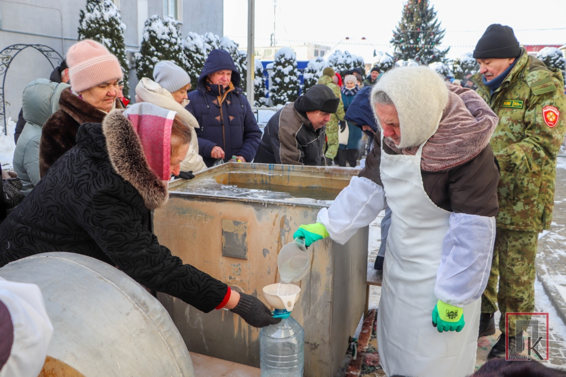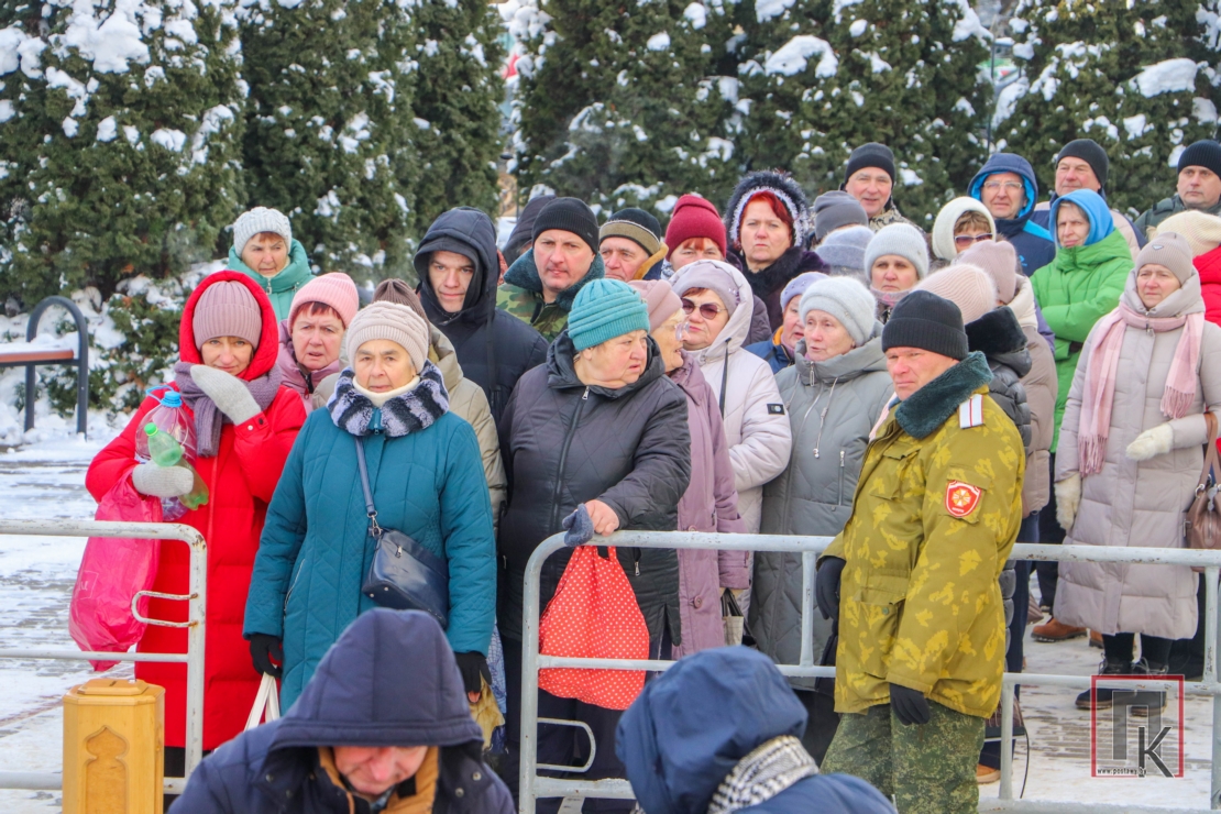 Здесь нет суеты. Под сенью храма, в морозном январском воздухе, царит удивительно спокойная, сосредоточенная атмосфера. Люди терпеливо ждут своей очереди, чтобы подойти к месту раздачи. Кто-то перешёптывается, кто-то молча смотрит на золотые купола, искрящиеся на зимнем солнце. Для многих это уже добрая традиция — встречать праздник именно здесь, у стен старинной церкви.