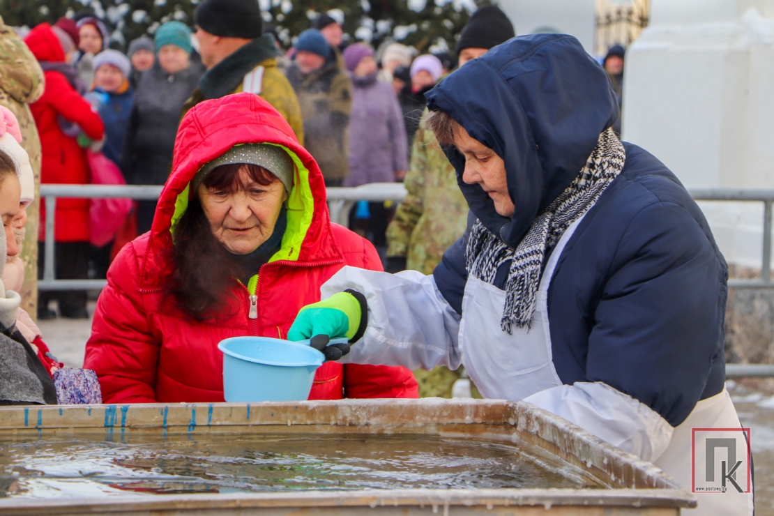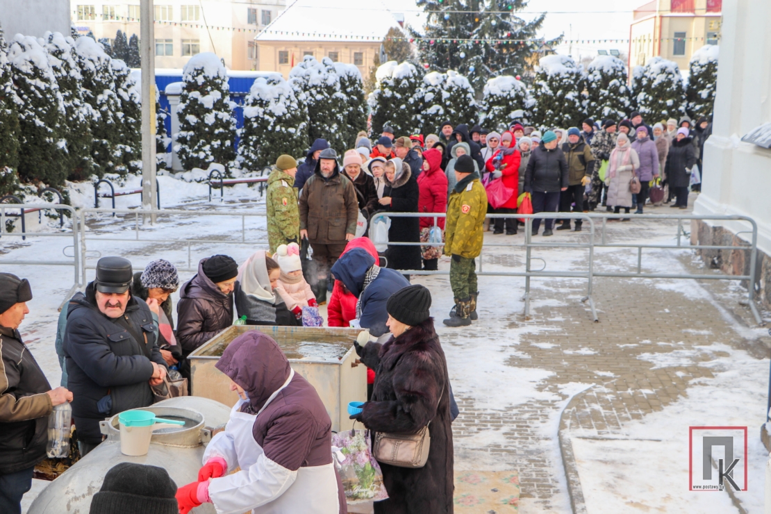 Сегодня, в день Крещения Господня, к храму Святителя Николая Чудотворца в Поставах идёт особенный поток людей. Они идут не спеша, вразнобой — целыми семьями с детьми, парами, пожилыми людьми в одиночку. В руках у каждого — не просто бутылки и банки, а сосуды для одной из главных святынь праздника — великой агиасмы, крещенской воды.