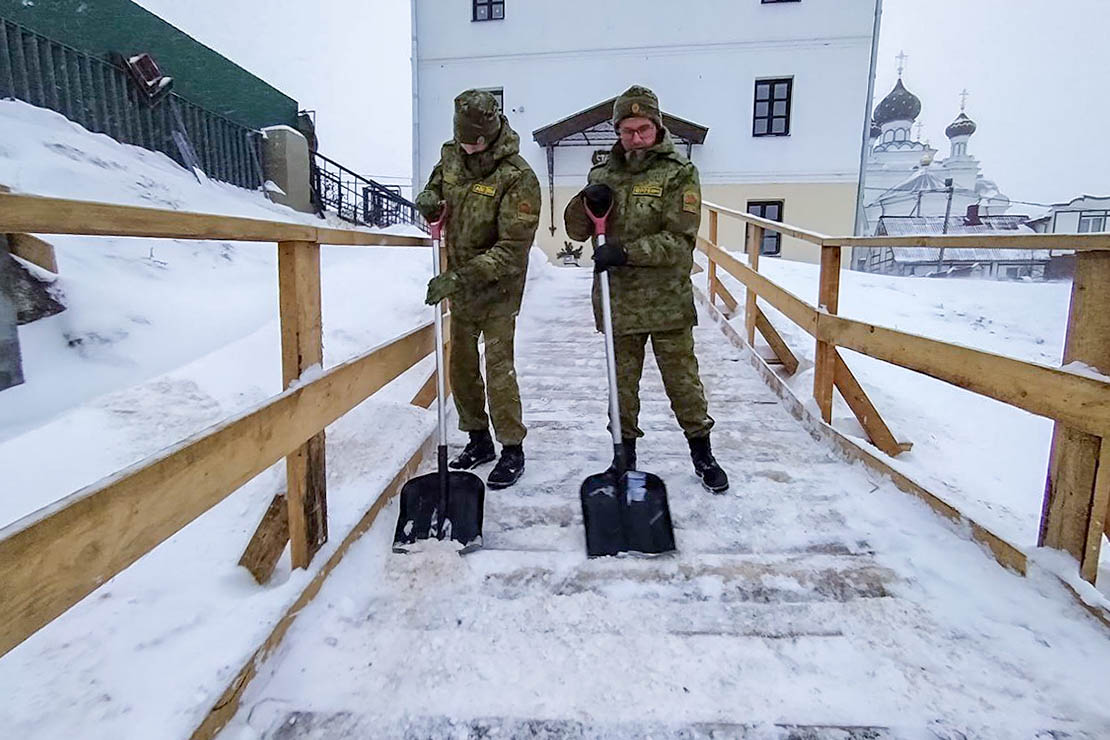 Не остались в стороне военнослужащие в/ч 74384. Они расчистили от снега не только свою прилегающую территорию, но и вышли на улицы райцентра, чтобы помочь пенсионерам и поддержать социальные учреждения. Тем самым доказали: забота о людях — часть их службы.