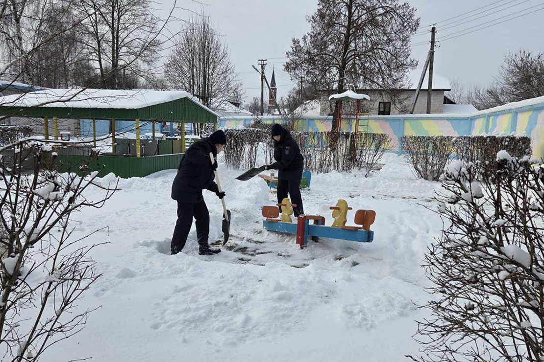 Выход нашёлся быстро. На помощь работникам детского учреждения пришли сотрудники Поставского районного отдела Следственного комитета, которые, вооружившись лопатами, дружно взялись за расчистку.