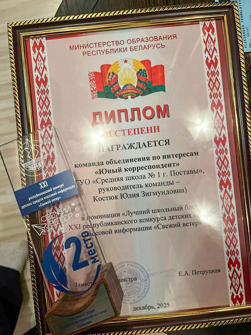 Особую благодарность Яна и Саша адресуют своему учителю Юлии Костюк, под руководством которой с начала учебного года занимаются в объединении по интересам «Юный корреспондент». Именно победа в XXI республиканском конкурсе детских СМИ «Свежий ветер» — 1-е место в областной номинации «Лучший школьный блог» — открыла девочкам дорогу в «Зубрёнок». Там они смогли проявить свои таланты и получить бесценный опыт в уникальной школе журналистики. По итогам этого же конкурса им присвоили 2-е место уже на республиканском уровне.