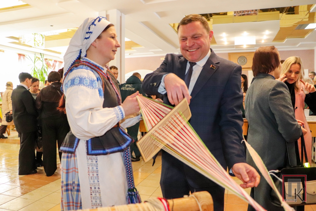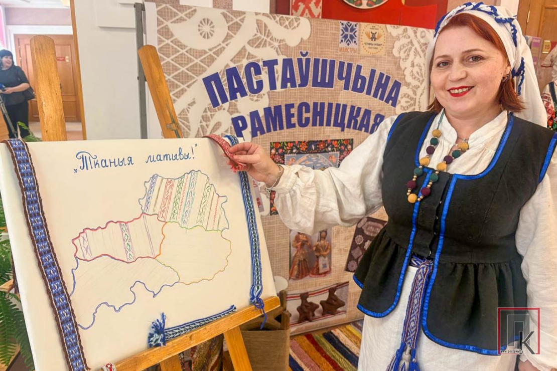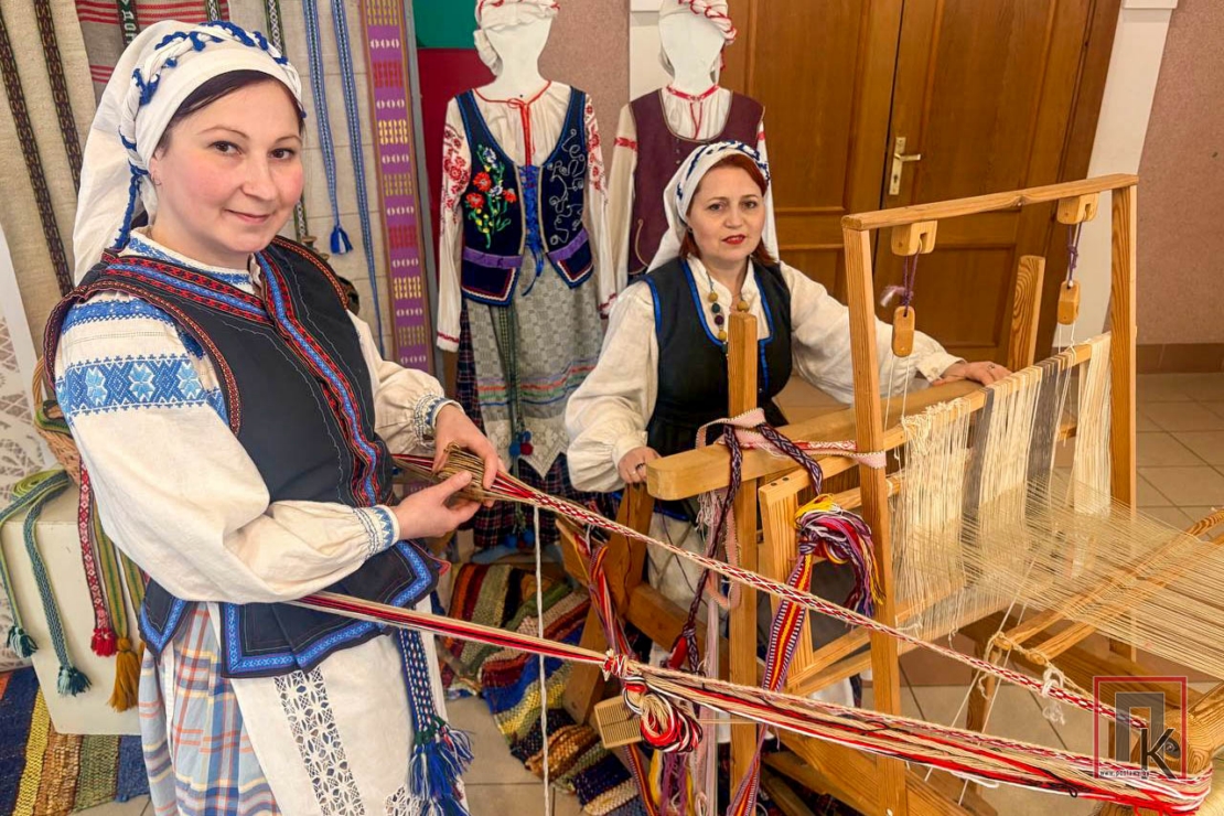 У фае Дома культуры на простым для ткацтва прыстасаванні — бёрдзе — ткалі невялікія элементы паясоў, з якіх потым будзе выкладзена карта. Гэты працэс захапіў не толькі жанчын, але і мужчын. Сярод першых свае ўтокі зрабілі тэхнолаг Пастаўскага мэблевага цэнтра, лаўрэат звання «Чалавек года Віцебшчыны-2025» Арцемій Грабеннікаў, начальнік Пастаўскага раённага вытворча-збытавага ўчастка філіяла «Энергазбыт» Сяргей Захарэвіч, ваеннаслужачыя.
