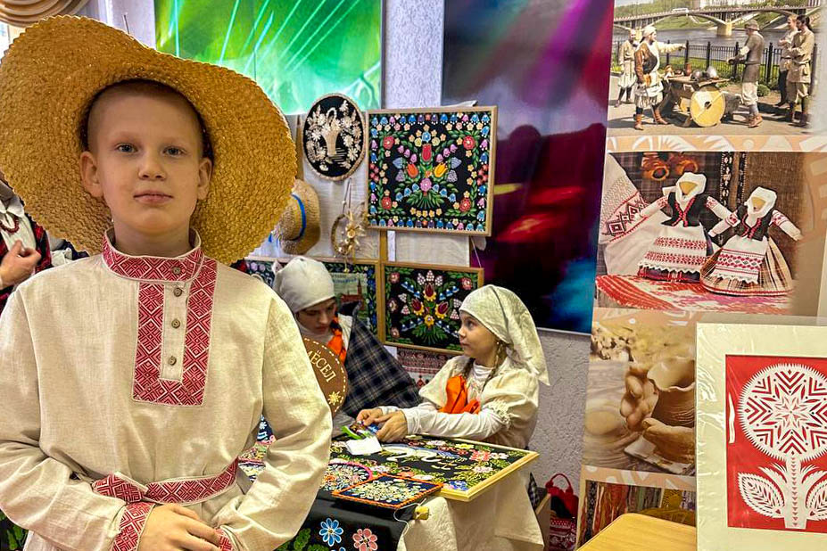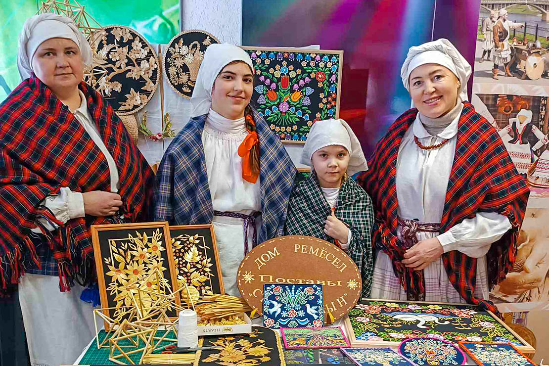 У выставачным праекце «Мудрасць стагоддзяў» традыцыйныя рамёствы прадэманстравалі ўдзельнікі гурткоў па народным роспісе і саломапляценні Дома рамёстваў «Стары млын» Анастасія Марціновіч і Дар’я Салавей.