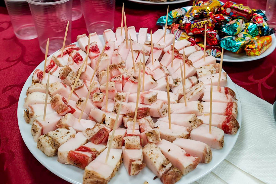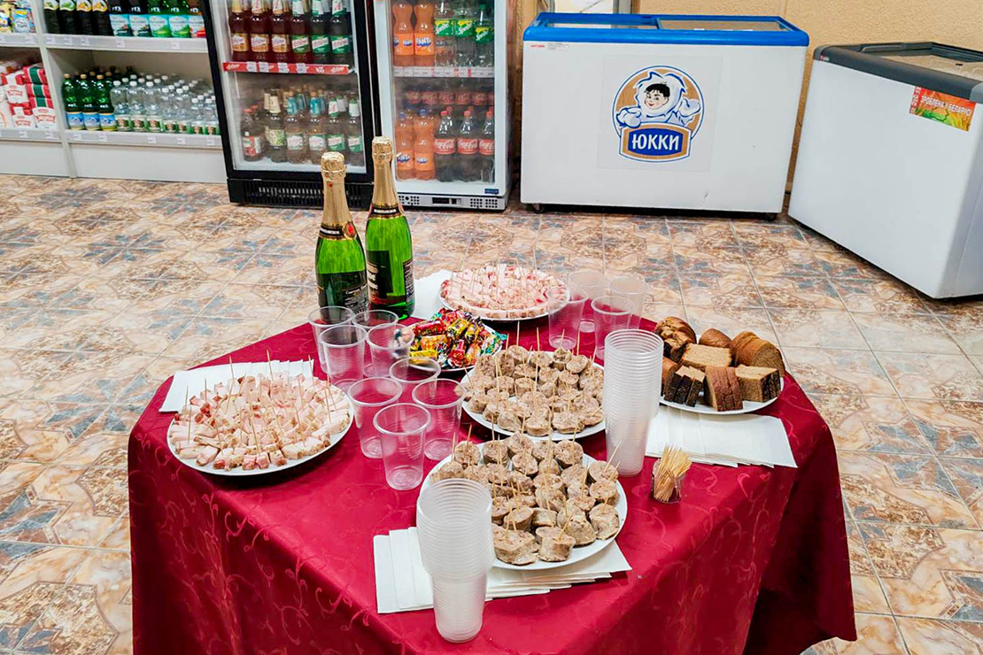 Во время открытия магазина традиционно была организована дегустация мясной продукции. Посетители с удовольствием пробовали солёное сало, отварные домашние колбаски и тут же становились в очередь, чтобы их приобрести. Здесь можно купить и молочную продукцию, хлебобулочные и кондитерские изделия, сладости, алкогольные напитки.