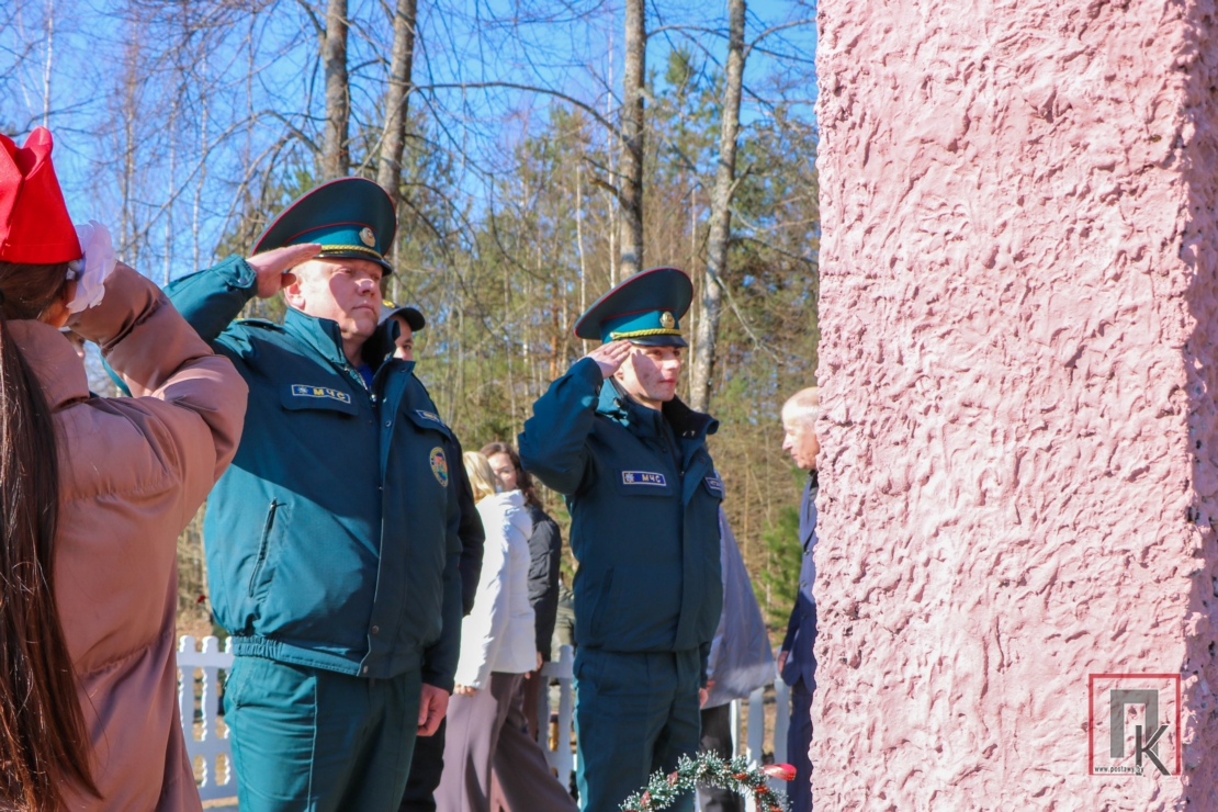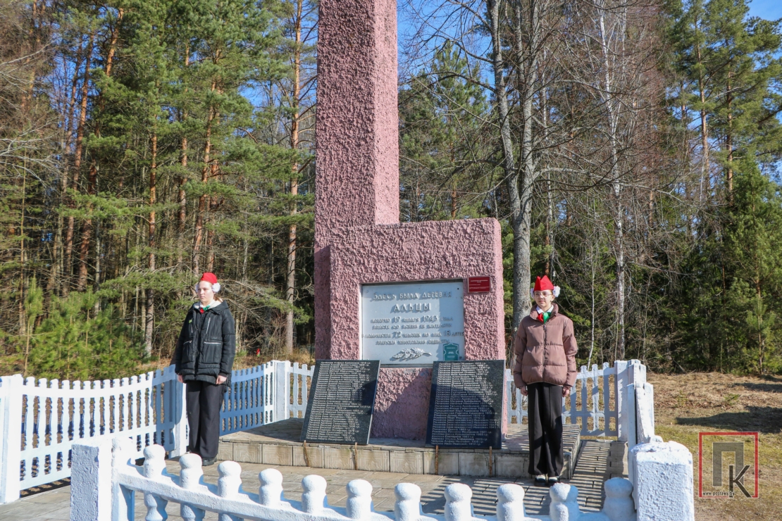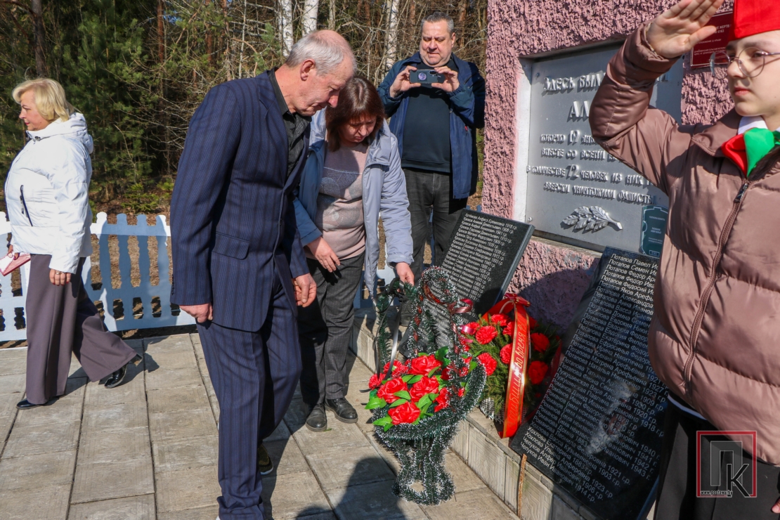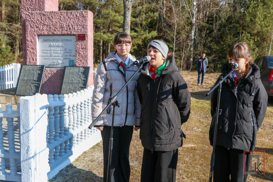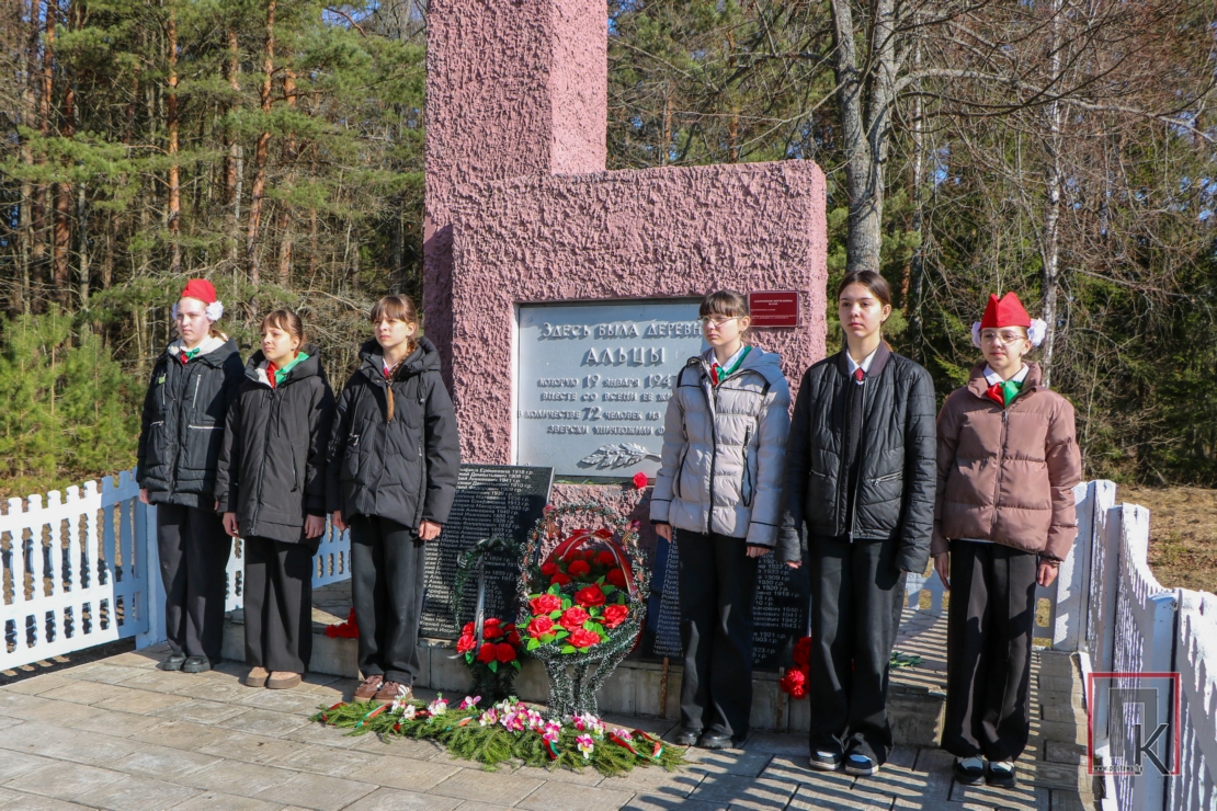 У памятника на месте бывшей деревни Альцы, уничтоженной немецко-фашистскими захватчиками вместе с жителями, в этот весенний день собрались представители органов власти, трудовых коллективов, воинских частей, общественных организаций, учащиеся школ.