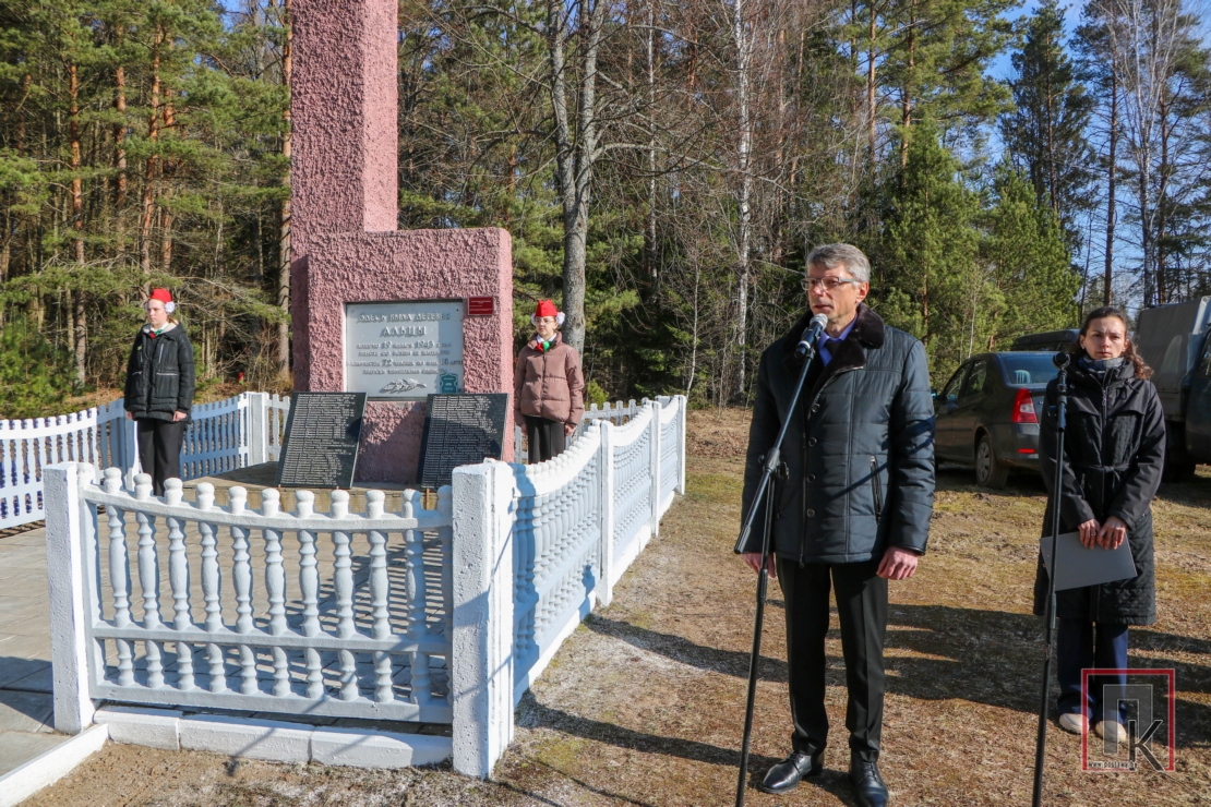 — Прошло 83 года со дня трагедии Хатыни, — обратился Юрий Николаевич к присутствующим. — Такую же участь разделили сотни белорусских деревень. Только на территории Поставского района по обновленным данным прокуратуры немецко-фашистскими захватчиками было полностью или частично сожжено 129 населенных пунктов. В этом скорбном списке и деревня Альцы. 72 ни в чем не повинных мирных жителя, в том числе 18 детей, были безжалостно уничтожены гитлеровскими карателями в январе 1943 года. Помнить об этих жертвах — наша святая обязанность.
