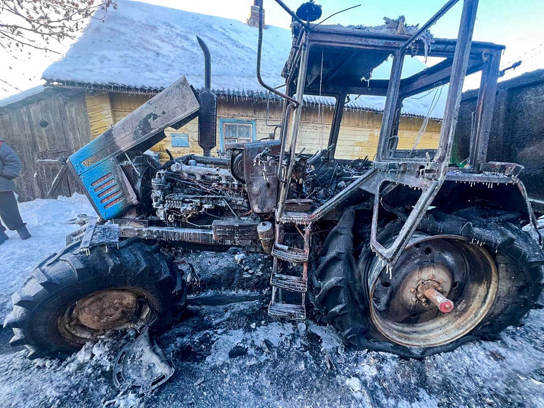 - 1 февраля в 15.03 на пульт дежурного РОЧС поступило сообщение о возгорании трактора «МТЗ 1221.2» в д. Иодовцы. Техника принадлежит ОАО «Камайский-агро». По предварительным данным, причиной происшествия стало короткое замыкание электропроводки. Прибывшие к месту вызова пожарные оперативно ликвидировали возгорание, однако огонь успел нанести значительный ущерб: повреждены передняя часть трактора, колёса, полностью выгорела кабина. Пострадавших нет.