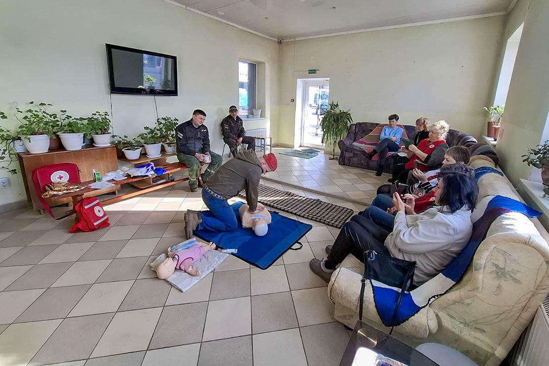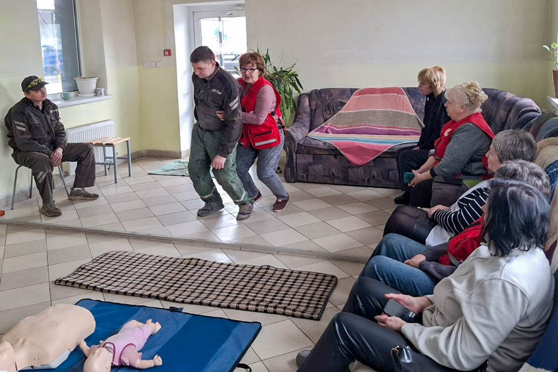Обучено 10 человек: 4 работника СТО «Гуцал», 4 администратора СТК «Озерки» ГУ «Поставский ФСК», председатель Поставской районной организации Белорусского Красного Креста и младшая медицинская сестра медико-социальной службы «Дапамога». В работе тренинга приняла участие медицинская сестра медико-социальной службы «Дапамога» Галина Малько.