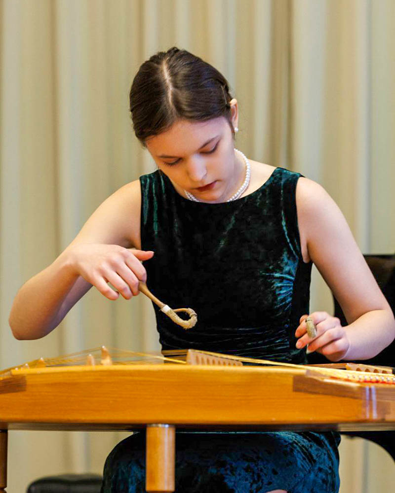 — У мастацкай школе ў мяне быў цудоўны педагог Галіна Барысюк, якая і захапіла ігрой на цымбалах. Ужо з 2 класа яна выстаўляла мяне на розныя конкурсы. З ёй ездзілі ў Смаленск, Кіеў, Санкт-Пецярбург. Я заваёўвала на конкурсах не толькі прызавыя месцы, але і Гран-пры. Галіна Эдуардаўна падрыхтавала мяне і да паступлення ў рэспубліканскую гімназію-каледж пры Беларускай дзяржаўнай акадэміі музыкі.
