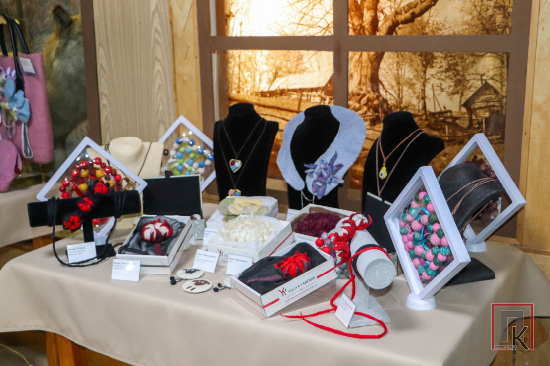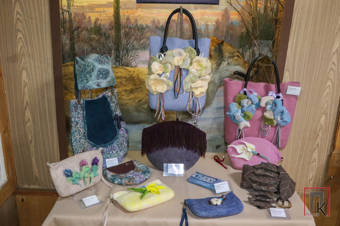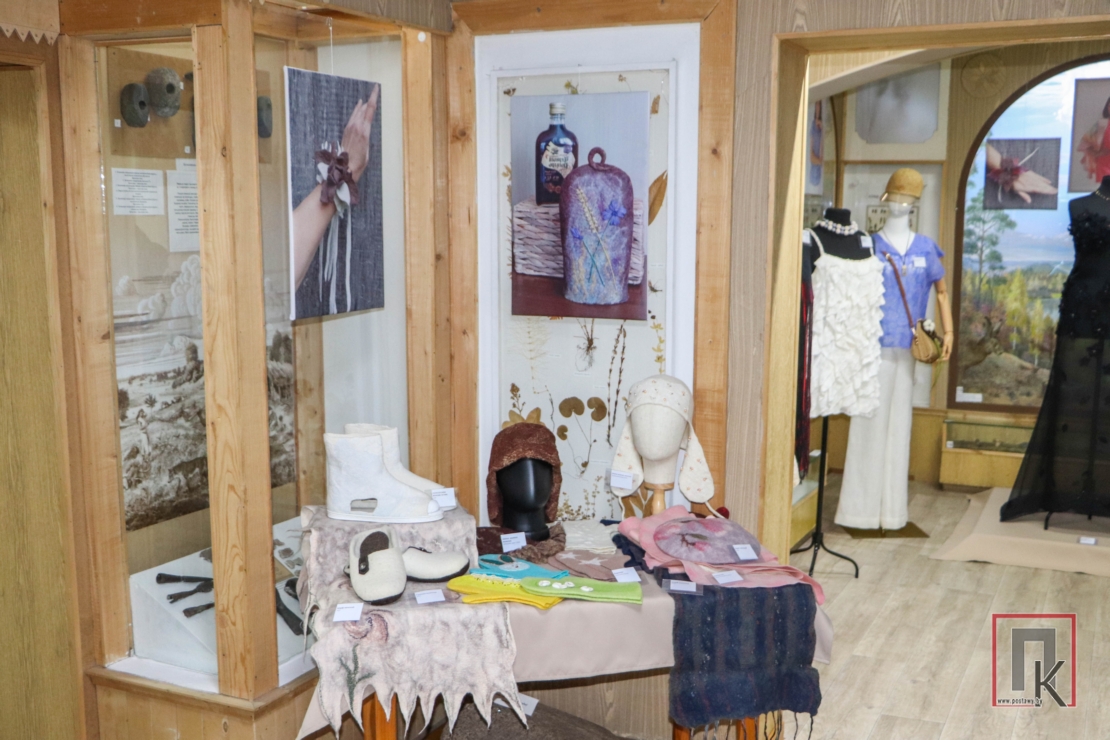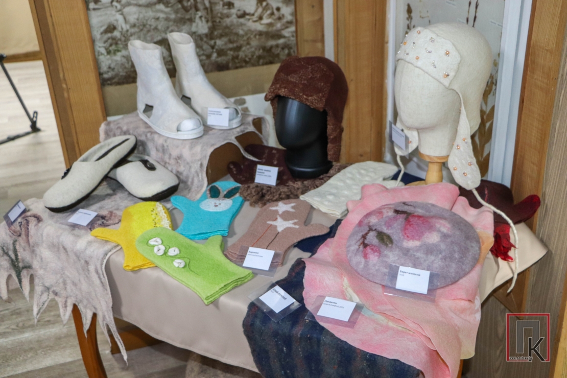 В выставочном зале — десятки предметов, каждый из которых хранит собственную историю. Картины и панно переливаются оттенками, словно написаны кистью художника, а не сваляны из шерсти. Женская одежда и головные уборы притягивают взгляд необычными формами и смелыми сочетаниями цветов. Аксессуары — от украшений до сумок — кажутся маленькими талисманами, несущими тепло рук мастера.