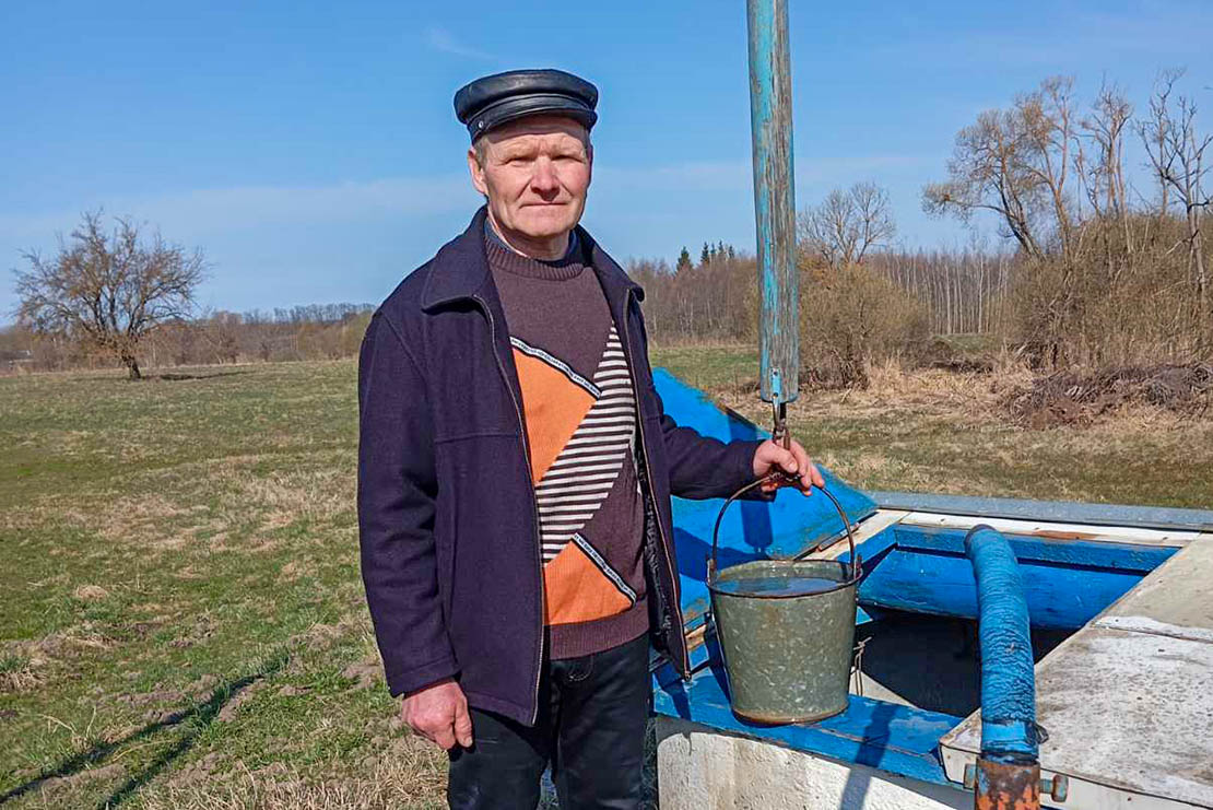— Ад маёй хаты да жураўля 320 крокаў, — расказваў Аляксандр Бурак. — З такой адлегласці кожны дзень насілі вёдрамі ваду, бо ў калодзежы ля дома яе не было. І ў іншых гаспадароў — таксама. А ўсе ж трымалі шмат жыўнасці. Ваду прывозілі малакавозам і ўлівалі ў студні, але яе хутка ўбірала ў сябе зямля. Таму ўсе хадзілі па ваду да крыніцы, на якой пазней Пётр Шарабайка абсталяваў калодзеж-журавель.