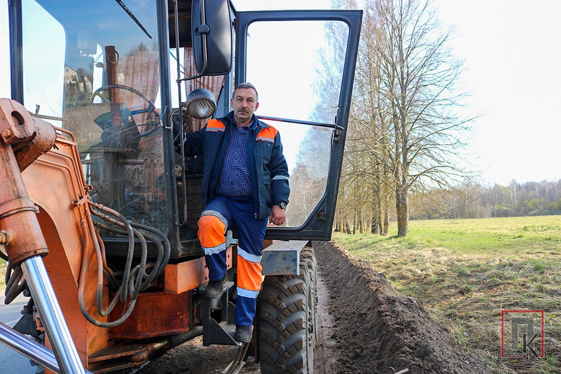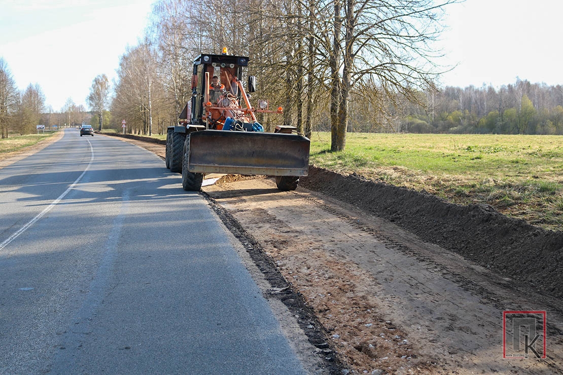 На гэтым тыдні механізатар ДРБУ-132 Раман Амбразевіч грэйдарам рыхтаваў аснову пад укладку асфальту на веладарожцы. Затым добраўпарадкуюць абочыну, пакладуць асфальт, зробяць разметку, установяць дарожныя знакі — і каціся сабе на веласіпедзе!