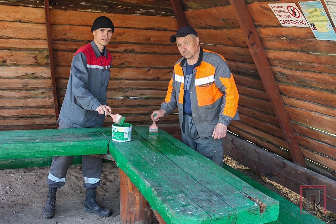 Вялікія планы па добраўпарадкаванні не толькі падчас суботніка ў лясгасаўцаў. Работнікі Пастаўскага лясніцтва прыводзяць у належны стан месцы адпачынку гараджан. Найбольш папулярнае з іх — возера Дубок. Тут ёсць усё неабходнае для камфортнага адпачынку: месца для вогнішча, дзе можна пасмажыць шашлык, пасядзець кампаніяй у альтанцы. Некаторыя альтанкі з часам ці з «дапамогай» адпачывальнікаў сталі непрыгляднымі. Таму вырашана ў некалькіх памяняць падлогу. Трэба пафарбаваць кантэйнерныя урны, лаўкі, сталы. Гэтым з серады тут займаюцца Генадзій Шышла і Вячаслаў Сарокін.