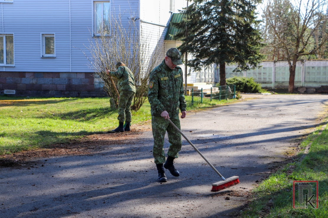 Чистота Поставщины — дело общее и почётное. Военнослужащие погранкомендатуры «Поставы» наводят порядок на территориях микрорайона 5-го городка.