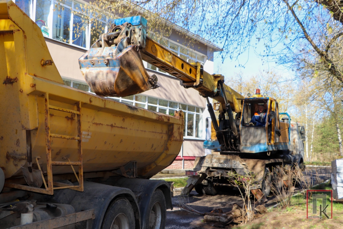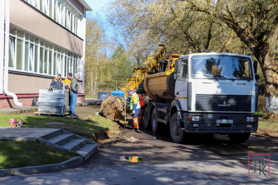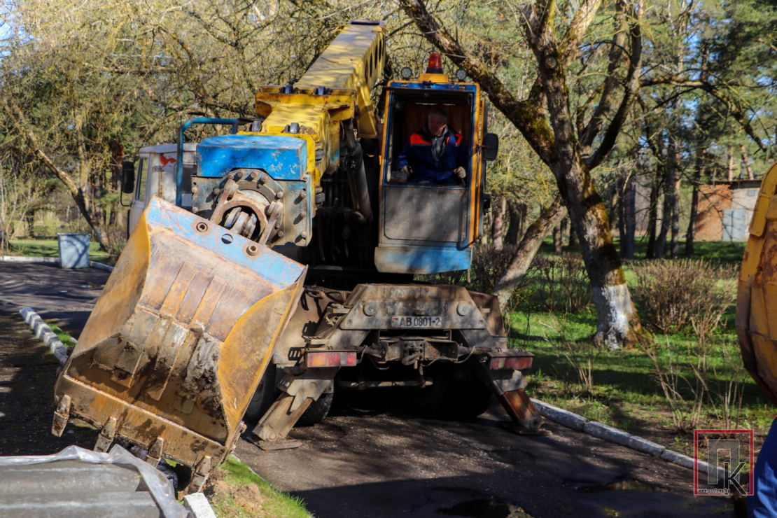 Возле районного Дома культуры по ул. Станкевича работники ДРСУ-132 приступили к демонтажу старых бордюров и асфальтного покрытия. В данный момент на объекте ведется подготовка основания для укладки нового асфальта. В планах дорожных служб — комплексное обновление стоянки за ДК.